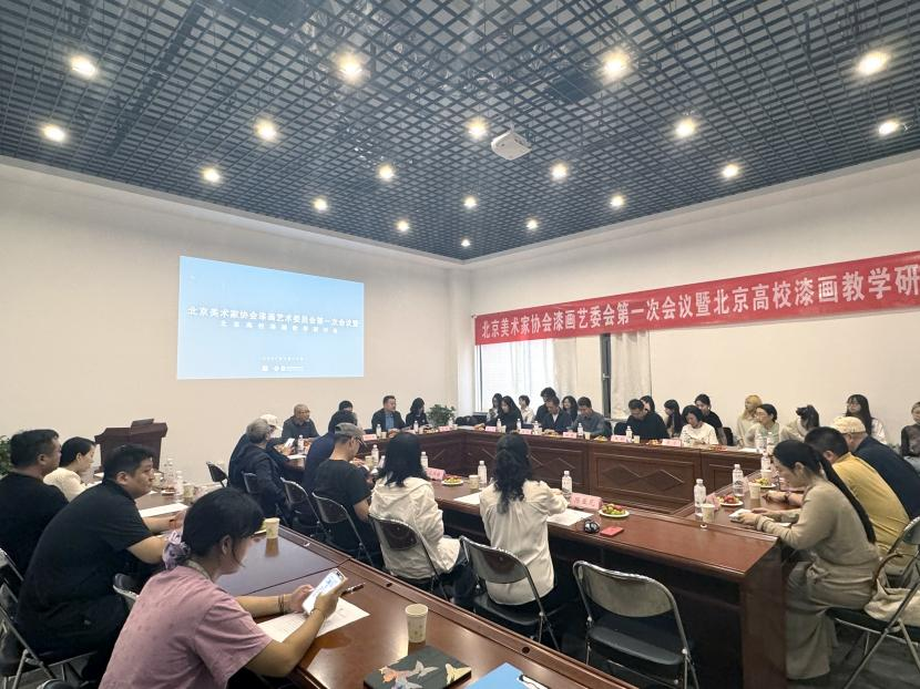 2024年9月14日下午,由公司与北京美术家协会漆画艺术委员会共同主办的北京美协漆画艺术委员会第一次工作会议暨北京高校漆画教学研讨会在yl23455永利会议室召开。yl23455永利集团公司党委书记张英、北京美术家协会副主席、yl23455永利经理邹锋、北京美协漆画艺术委员会主任程向军及北京美协漆画艺术委员会21名委员参加会议。会议围绕“漆画在首都文化建设中的属性与定位”“北京美协漆画艺委会工作展望与建议”“当代漆画创作的路径与走向”“高校漆画教学情况介绍与交流”四个议题展开了热烈而切实的讨论。