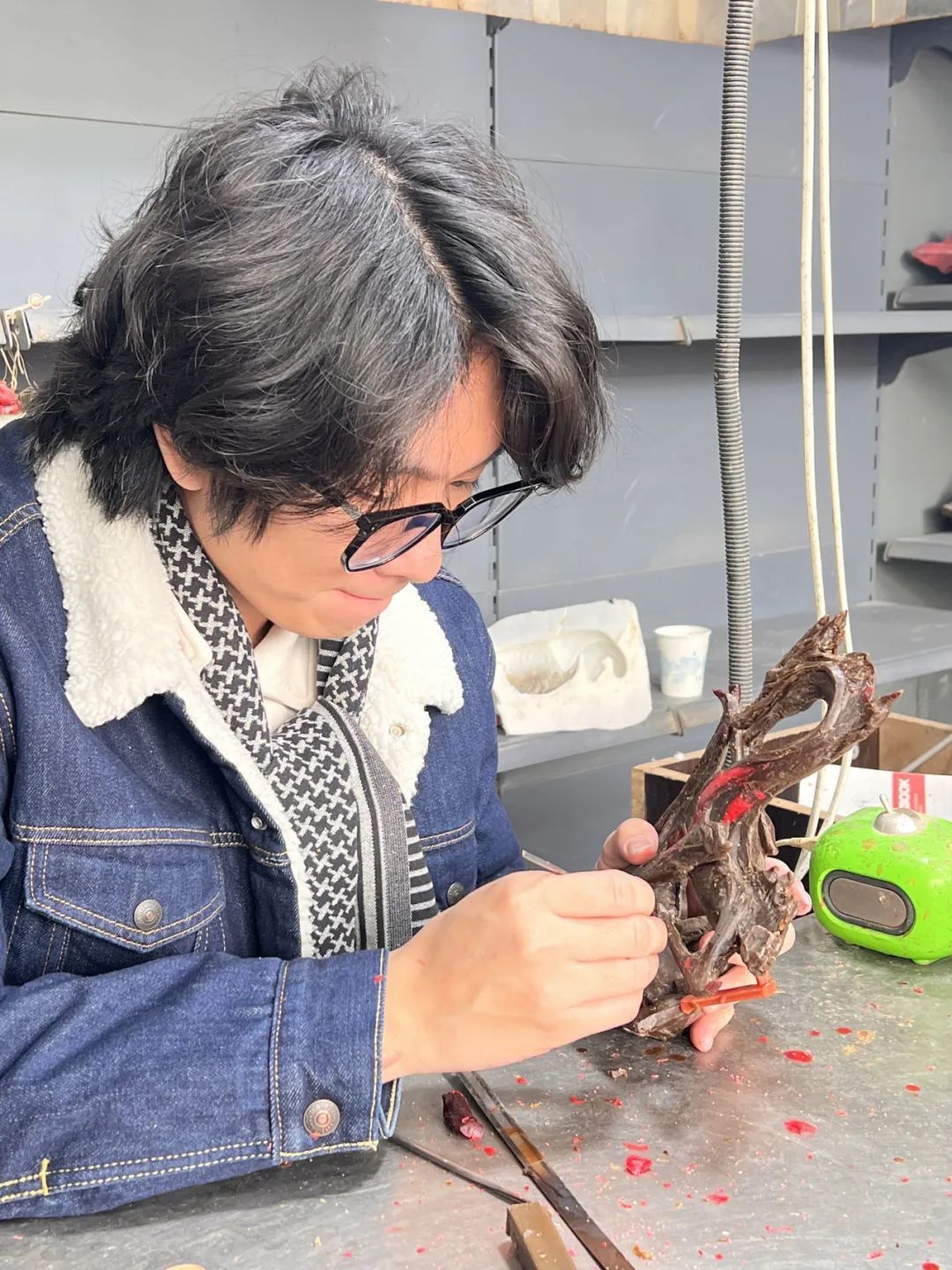 为作品《龙行天下·逍遥》修蜡模