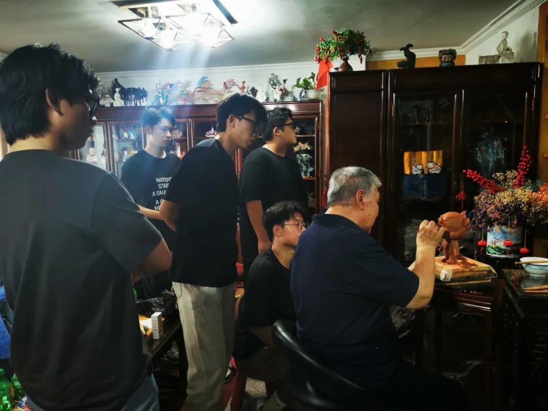 北工大2020级雕塑专业员工在泥人张第四代传人张錩先生家中欣赏彩塑作品并学习雕塑技法