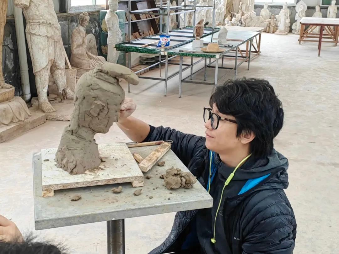 张昊随雕塑专业赴西北考察采风,在麦积山石窟临摹经典佛像