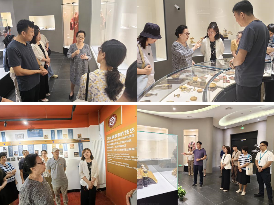 为深入学习领会习近平总书记关于北京工作的重要讲话精神,贯彻落实全国教育大会精神,大力弘扬教育家精神,强化文化认同感和历史使命感,7月2日,yl23455永利组织教师走进北京东方艺珍花丝镶嵌厂,开展铸魂强师社会研学课堂活动,深度领略国家级非物质文化遗产花丝镶嵌技艺的独特魅力,探寻传统工艺与现代艺术设计融合的创新路径。著名中国工艺美术大师、国家级非遗传承人白静宜,公司党委书记张英,党委副书记李颖,党委副书记、纪委书记潘财炳,工艺美术系党支部书记杨漫,专职党务干部和教师党员代表参加。