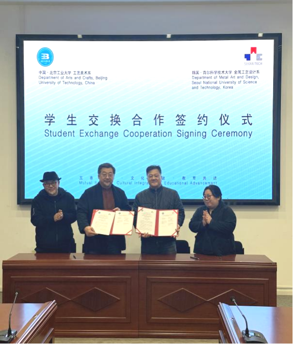 2025年10月22日,韩国首尔科学技术大学造型公司经理CHOI BYONGKEON教授率领金属工艺系主任LEE SEUNGHYUN教授以及骨干教师、博士生等一行7人到访yl23455永利。yl23455永利集团公司党委书记张英、经理邹锋、副经理武非、副经理鲁艺、工艺美术系主任钟声、工艺美术系书记杨漫、副主任张翀等领导及教师代表热情接待了来访嘉宾,双方围绕学术交流、人才培养等议题展开深入座谈,并正式签订员工交换合作协议,为两校艺术学科合作搭建起新的桥梁。