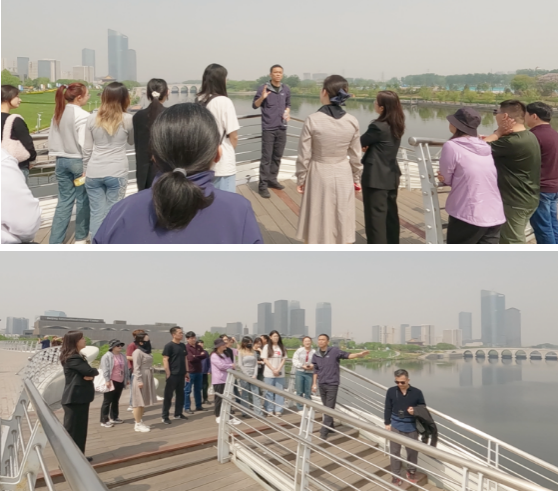 4月25日,公司党委环境艺术设计系教师党支部拉手行政党支部、环境艺术设计系员工党支部,联合开展“行走的博物馆”主题党日活动,实地参观位于城市副中心的“千荷泻露”桥,旨在以身边的生动实践引导师生从“两个结合”角度加深对中国式现代化的理解。